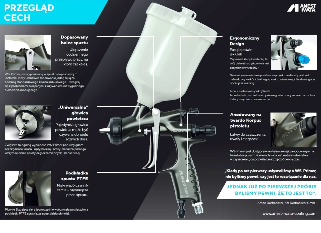 Pierwszy pistolet natryskowy dedykowany do różnorodnej aplikacji podkładów lakierniczych. Dostępny w 2 zoptymalizowanych wersjach pod aplikacje mokro na mokro, oraz do podkładów wypełniających. Model dopracowany, pod każdym względem.