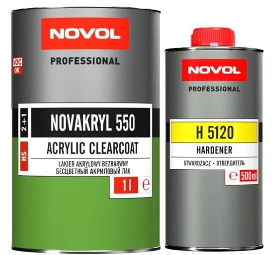 NOVAKRYL 550 to szybkoschnący bezbarwny lakier akrylowy o wysokiej zawartości części stałych (HS) i zwiększonej odporności na zarysowania. Produkt uzyskuje gotowość do polerowania już po 15 minutach wygrzewania w 60°C. Lakier posiada wszechstronne zastosowanie zarówno do małych, jak i większych oraz częściowych wylakierowań. Charakteryzuje się wysokim połyskiem, twardością i bardzo dobrą odpornością na promieniowanie UV.