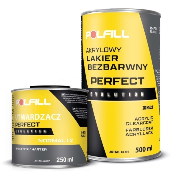 Wysokiej jakości akrylowy lakier bezbarwny klasy HS 2:1 przeznaczony dla wymagających użytkowników, którzy cenią sobie zarówno łatwość stosowania jak i perfekcyjny wygląd uzyskanej powłoki. Lakier Perfect Evolution charakteryzuje się głębokim, szklistym połyskiem, odpornością na zmienne warunki atmosferyczne, w tym promieniowanie UV, oraz trwałością warstwy na najwyższym poziomie. Aplikowanie lakieru jest niezwykle intuicyjne, przewidywalne oraz z poczuciem pełnej kontroli w całym zakresie stosowania temperatur. Dużą zaletą jest również łatwość polerowania.