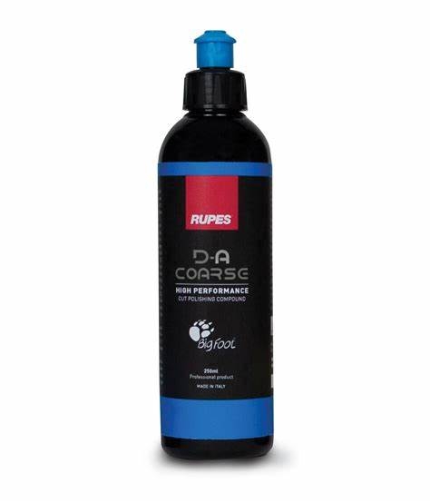 Pasta polerska RUPES DA Coarse (mocno ścierna). RUPES D-A COARSE to najnowsza wysokowydajna mieszanka firmy RUPES zaprojektowana z myślą o maksymalnej wydajności. Ta szybko tnąca mieszanka jest idealna dla użytkowników, którzy chcą szybko usuwać defekty i bezproblemowo obsługiwać każdy rodzaj farby. Formuła jest zoptymalizowana, aby osiągnąć najlepszą wydajność w przypadku stosowania z grubą niebieską pianką RUPES, podkładkami z wełny DA lub grubymi krążkami z mikrofibry razem z polerkami BigFoot Dual Action, w tym narzędziami mimośrodowymi i narzędziami napędzanymi przekładnią.