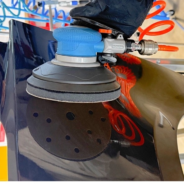 Szlifierka oscylacyjna pneumatyczna 150mm skok 5mm wykonana z wysokiej jakości materiałów.